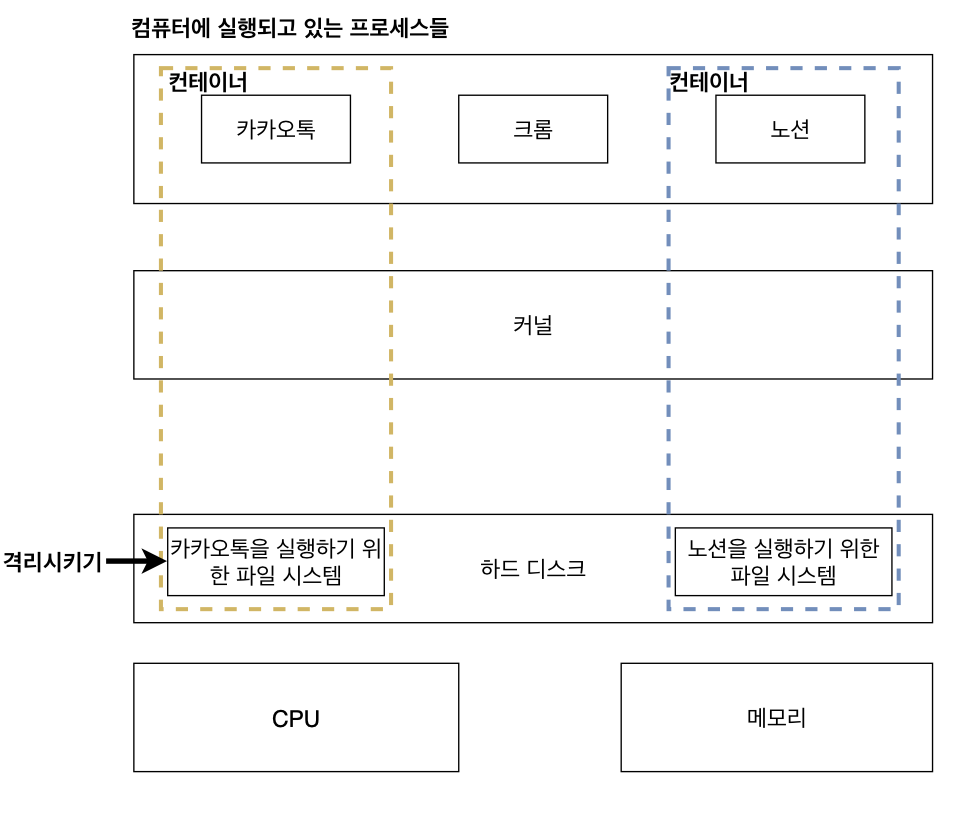 동일한 시스템에서 별개의 독립된 공간을 격리된 환경에서 운영하는 가상화 기술이다.